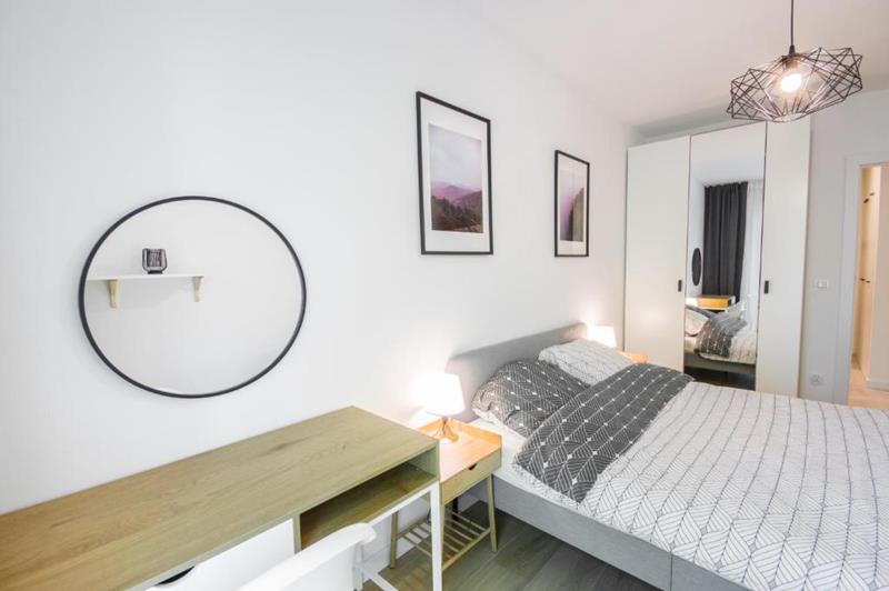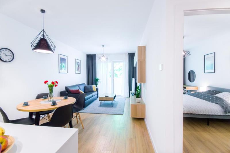 - 2 pokoje (1 sypialnia, 1 salon, łazienka)